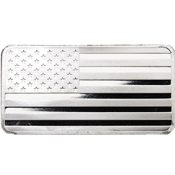 The Highland Mint American flag 10 oz silver bar is one of the most all-American silver bars you will ever find in the market. This bar is one of the most-coveted non-sport, non-military silver bars from the Highland Mint catalog. It is true American pride implanted in 10 troy ounces of superior .999 fine silver sourced responsibly from America. As with all their products, the Highland Mint guarantees the quality and purity of this 10 oz American flag silver round.