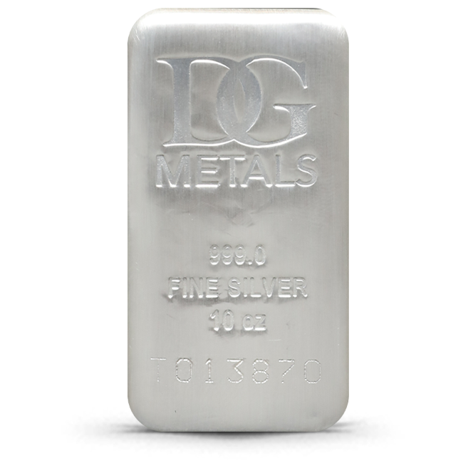 Eligible for inclusion in U.S. IRAs and Canadian RRSPs, the 10 oz Dillon Gage Silver Bar offers the perfect balance of portability and intrinsic value.