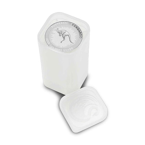 The 2026 1 oz Silver Kangaroo Tube of 25 Coins provides investors with an efficient way to acquire .9999 fine silver from one of the world’s most trusted mints. Each Brilliant Uncirculated coin is struck by The Perth Mint and showcases the iconic red kangaroo—symbolizing Australia’s strength and vitality.