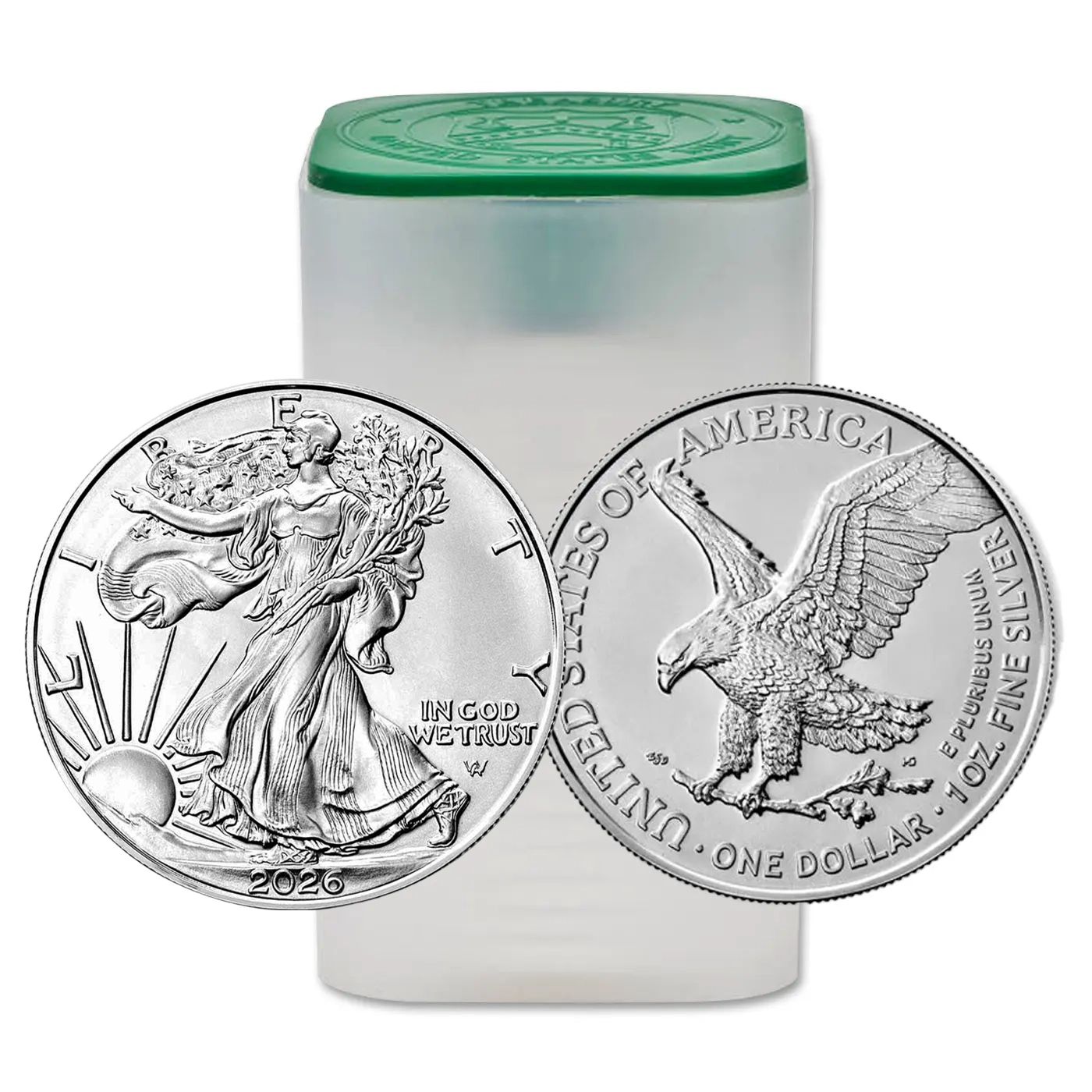 The 2026 Silver American Eagle Roll of 20 Coins provides a convenient bulk option for investors who want Silver Eagles directly in official U.S. Mint packaging. The roll contains twenty Brilliant Uncirculated coins, each struck in .999 fine silver at U.S. Mint facilities.